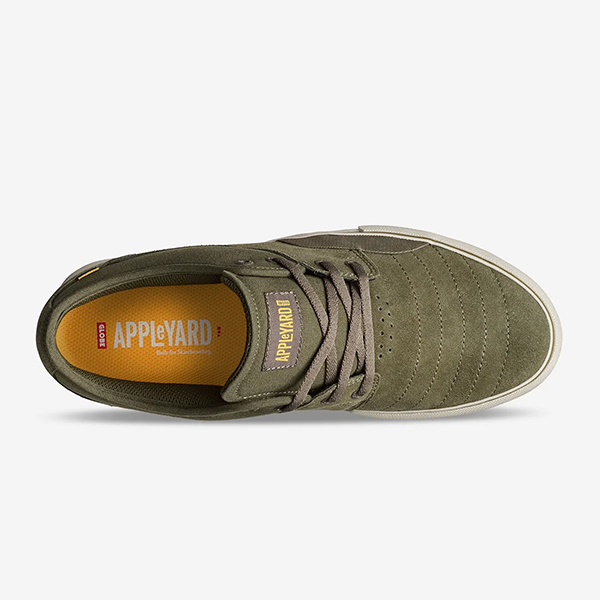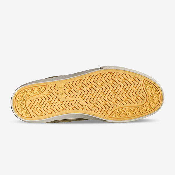 The Mahalo Plus in Khaki/Antique is Mark Appleyard’s classic vulcanized skate silhouette with added rubber ollie patch for durability. Just like the original Mahalo the Mahalo Plus also features Globe’s Shockbed™ insole for impact control specifically formulated for Mark and Super-V™ outsole for enhanced grip and board feel.