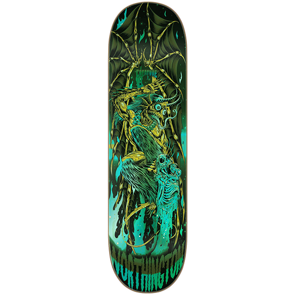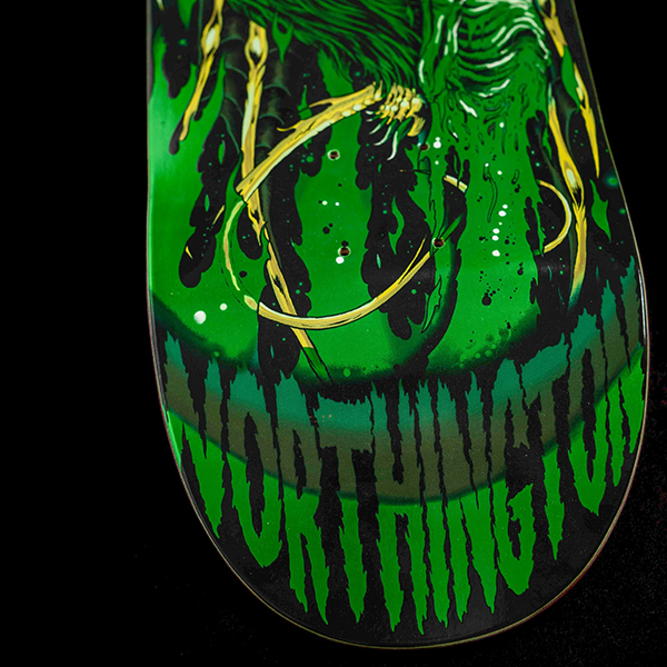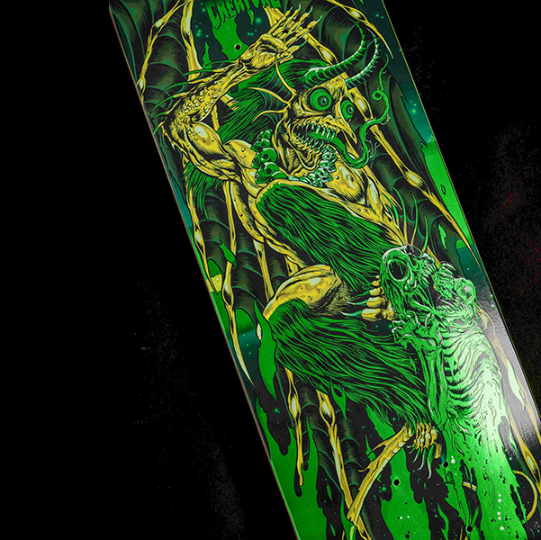 J Worth’s classic Skinner graphic is reignited with mesmerizing green foil on his 8.6” VX Skullburn Pro 1-Off. Lord Worthington’s indisputable go-to whip just got leveled up and is ready for some serious abuse.