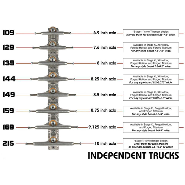 Independent truck company bildades redan 1978 i Santa Cruz, Kalifornien. Independent trucks levererar världens mest populära skateboard truckar. Genom åren har dom strävat efter att utveckla sina skateboard truckar från dom första Stage1 till nuvarande Stage11.